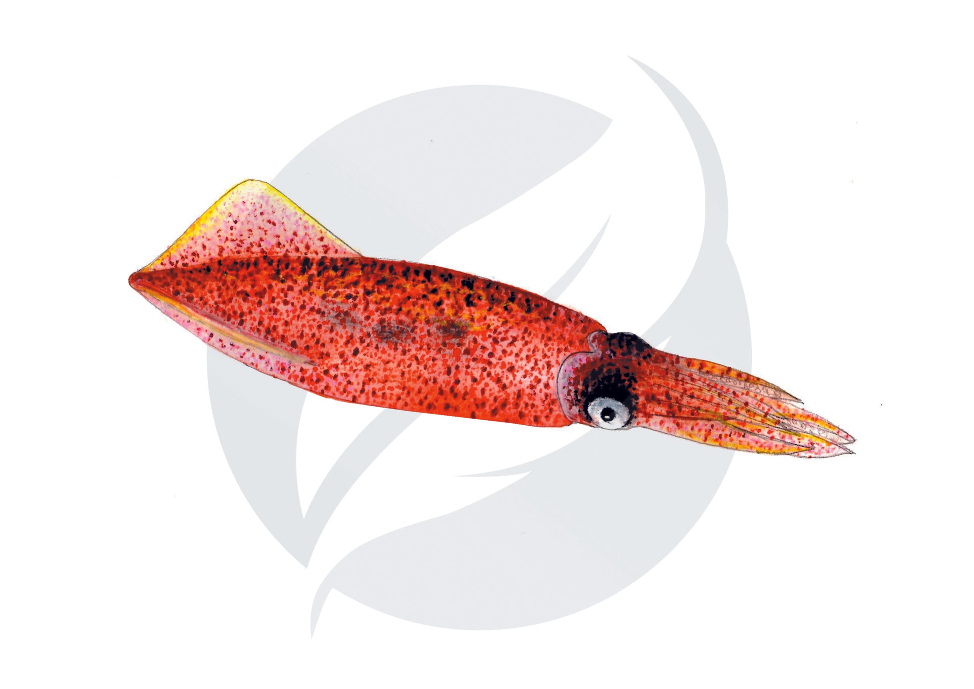 Calamar cuya longitud va de entre los 15 y 30 cm, cuerpo cilíndrico y membranoso de color rosado mayormente, de su cabeza salen 2 tentáculos y 8 brazos, tienen unos ojos bastante grandes. Vive en aguas cerca de la costa, entre la superficie y los 100 metros de profundidad. Es un depredador voraz que se alimenta de peces y gambas, y de algunos animales del fondo del mar.